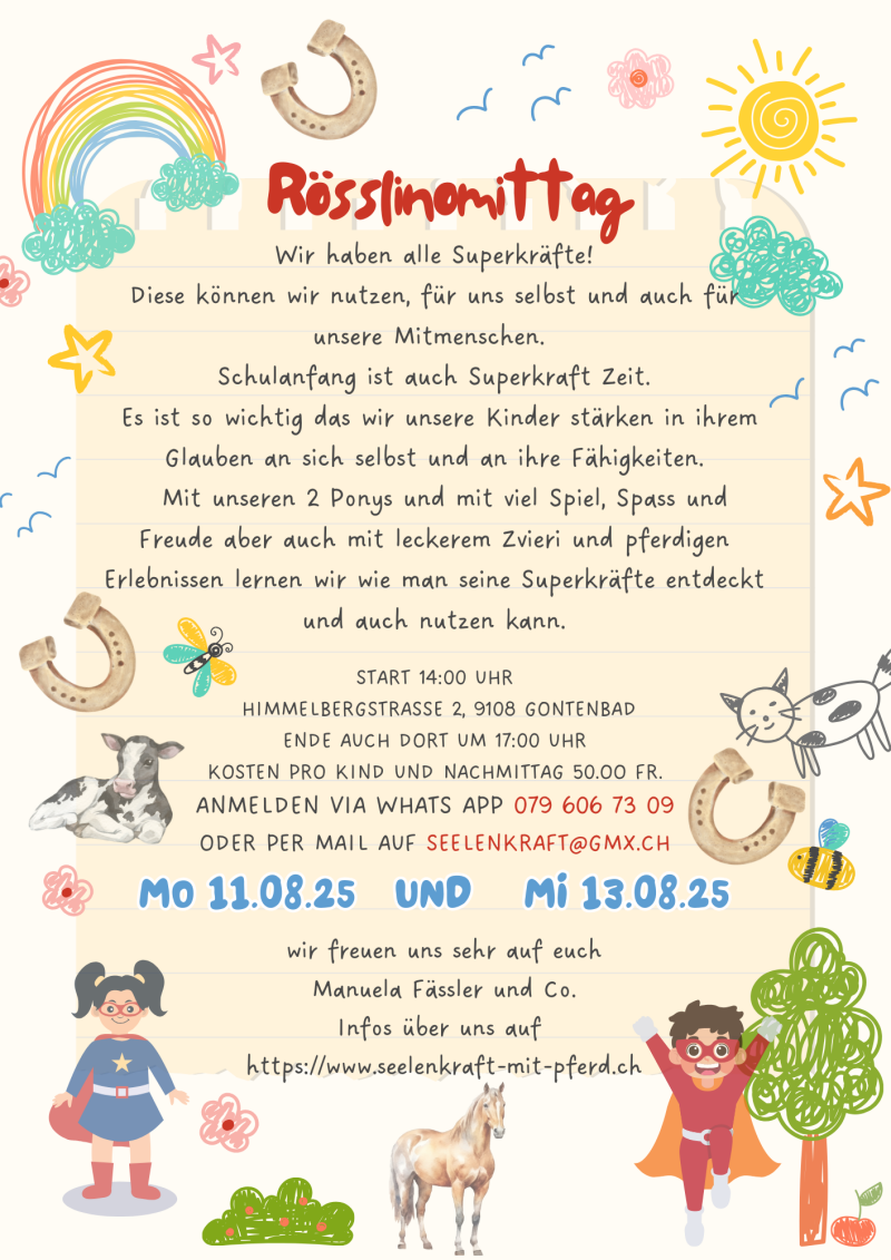 Für Infos/Anmeldung einfach unter Kinder/Pferd Abenteuer das Formular ausfüllen und du bekommst immer die aktuellen Daten und Infos was gerade geplant ist bei uns!